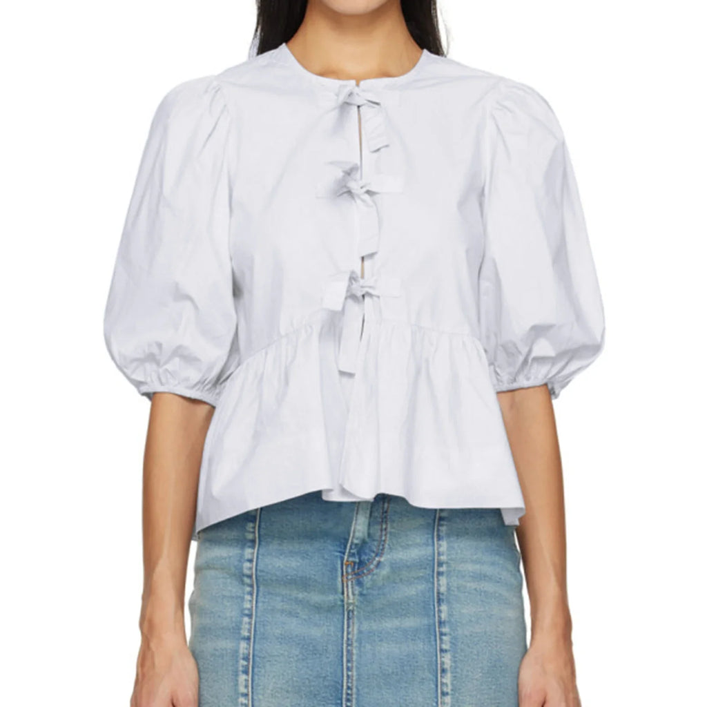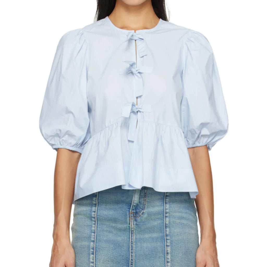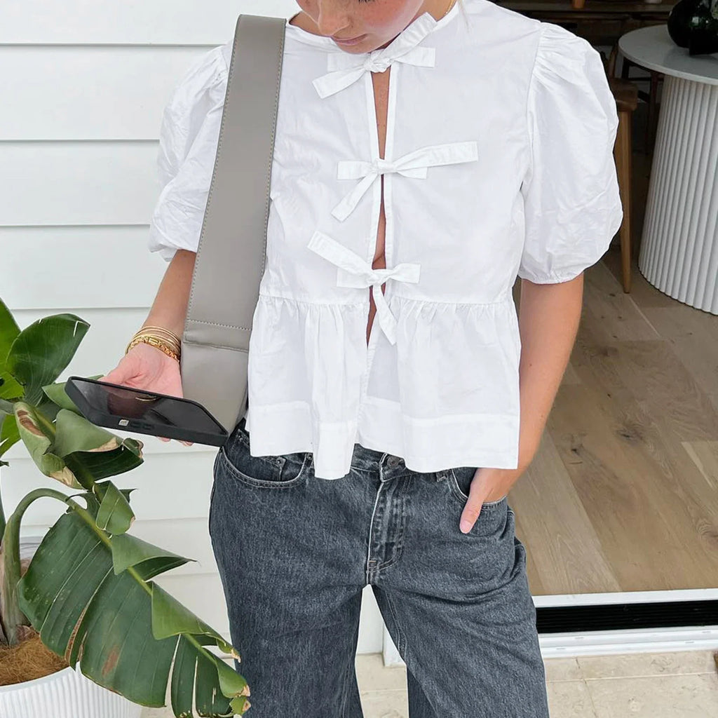 Don’t miss out on this stylish yet functional Women's Blouses Stripe Print Short Puff Sleeve Tie Front Loose Tops Shirts Streetwear. Whether you’re headed to a brunch date or an afternoon stroll, this blouse will keep you looking effortlessly fashionable.