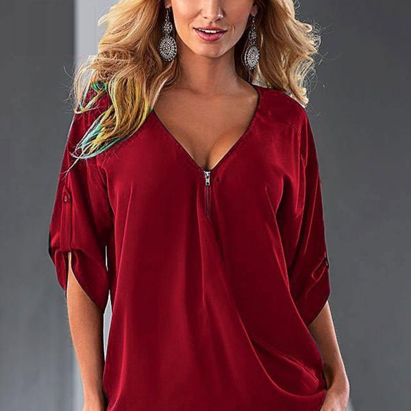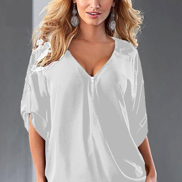 Elevate your wardrobe with our Womens Tops Fashion Women Chiffon Blouse Plus Size Loose Elegant Half Sleeve Shirt Black White Red Blue. This stylish blouse is designed to provide you with both comfort and elegance, making it the perfect addition to your seasonal outfits. Crafted from lightweight chiffon fabric, this blouse offers a flattering fit that drapes beautifully over your silhouette, ensuring you look stunning on any occasion.