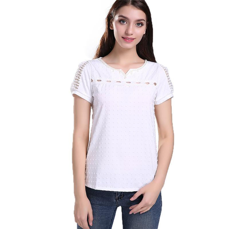 Don't miss out on the opportunity to enhance your style with this must-have top. The Women Fashion Short Blouse White Color Short Sleeve O-Neck Hollow Out Chiffon Lace Tops Casual Office Loose Shirt is a timeless piece that combines elegance and comfort, making it a perfect choice for any occasion.