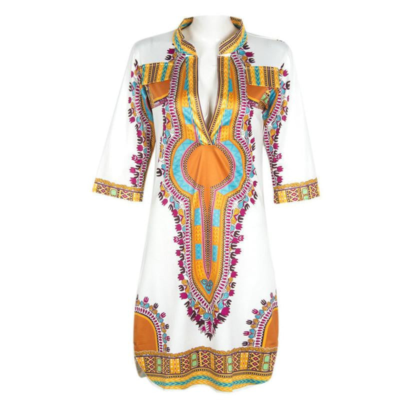 This Women Summer Casual Deep V-Neck Traditional African Dashiki Print Knee Dress pairs beautifully with sandals for a relaxed look or wedges for a more polished appearance. Accessorize with statement jewelry to enhance its unique print.