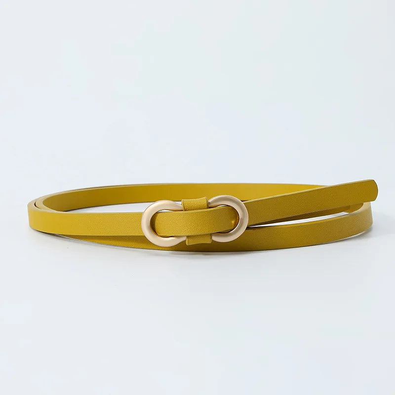 Unleash your daring side with the No Hole PU Thin Waist Belt! This bold accessory adds a daring edge to any outfit, while its 8-shaped buckle provides a secure and stylish closure. Made from faux leather, it's both fashionable and durable. Perfect for achieving a slim and stylish look.