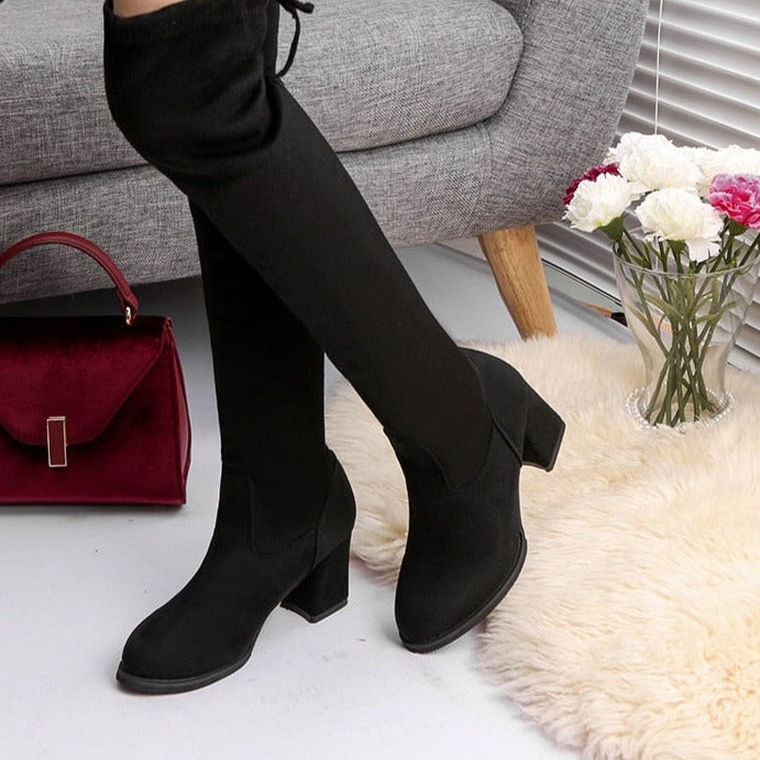 With a knee-high length and round toe shape, the Women Boots Winter Over The Knee Heels Suede Long Comfort Square Thigh High Boots are versatile enough to be paired with dresses, skirts, or your favorite jeans. The zipper closure offers easy on-and-off convenience, making them a practical choice for your busy lifestyle. Elevate your winter fashion game and embrace the cold season with these must-have boots!
