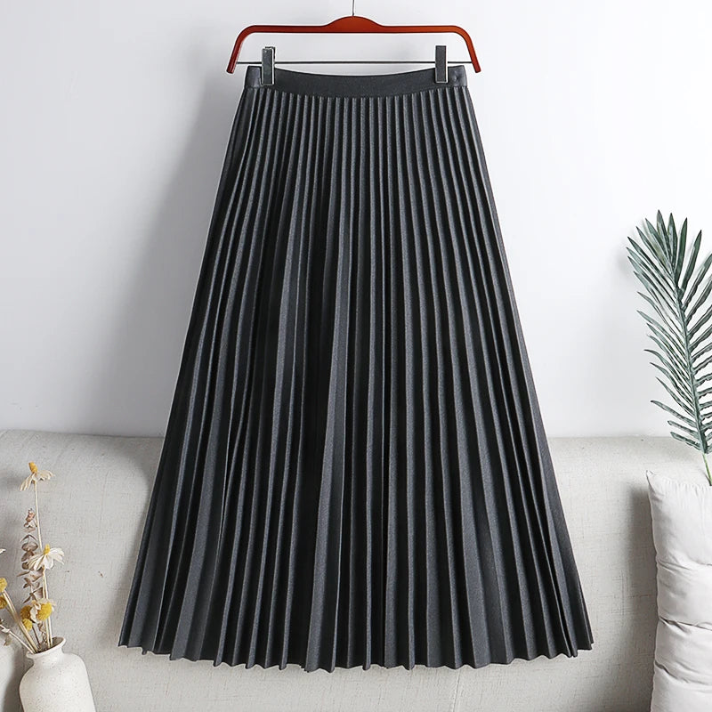 Discover the perfect blend of style and comfort with our Pleated Skirt Elegant Elastic High Waist A-LINE Office Ladies Work Midi Long Skirt Black Green Grey Autumn Winter Women's Skirt. This versatile piece is an essential addition to every modern woman's wardrobe, designed to elevate any office attire or casual look.