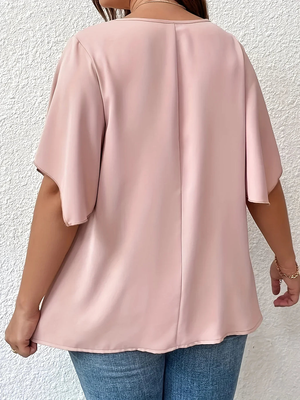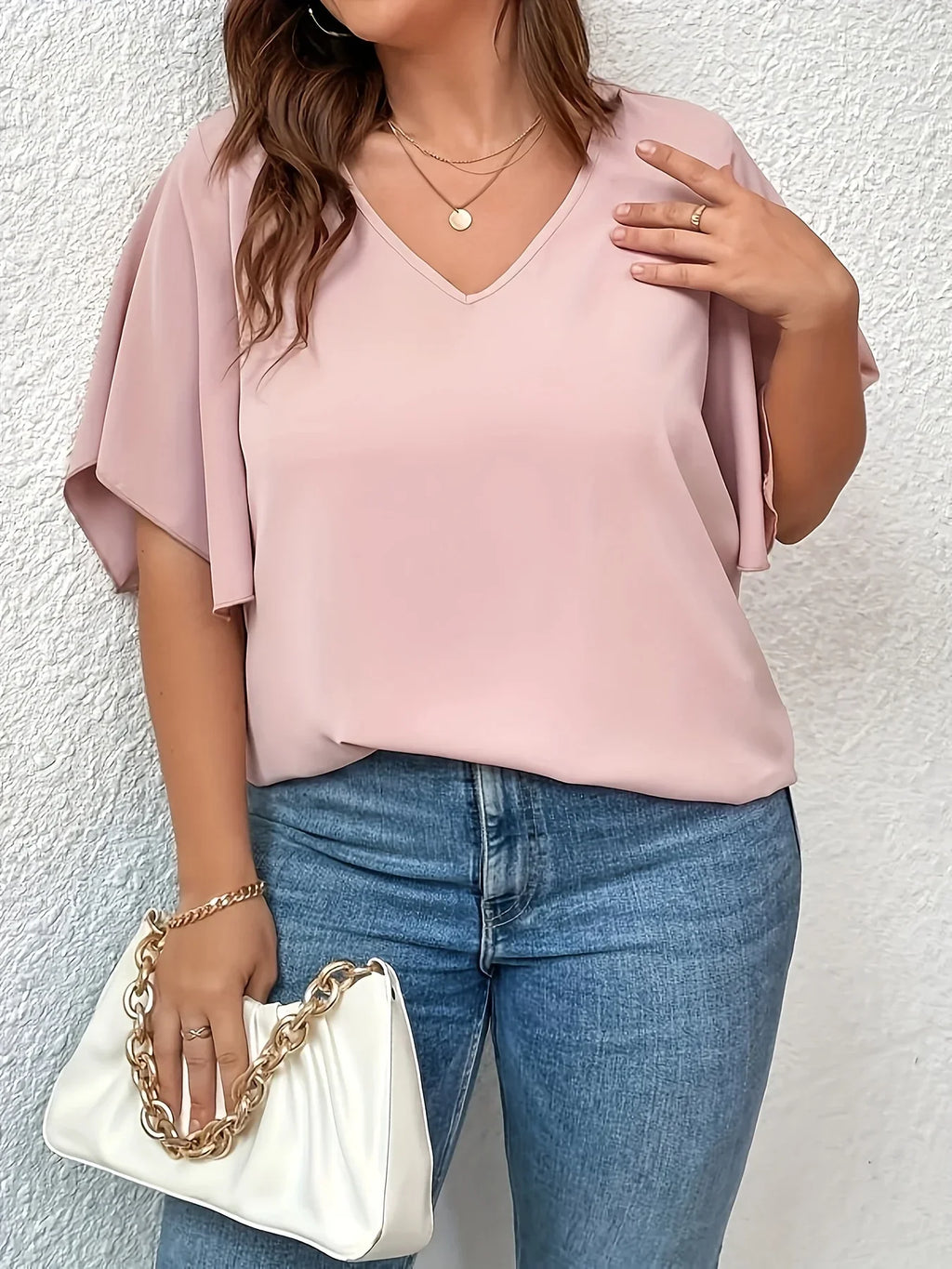 Embrace style and comfort with our Women's T-shirt! Crafted with a slight stretch and bold v-neck, this blouse offers a flattering fit. Its bell sleeves add a touch of flair to your casual wardrobe. Upgrade your pullovers game now!