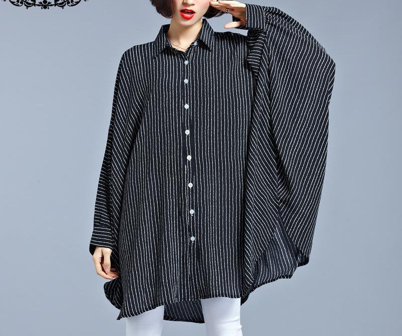 Don't miss out on enhancing your spring wardrobe with this elegant and fashionable piece. Get your Plus Size Chiffon Blouse Women Dresses Big Size Spring Striped Print Casual Clothing Batwing Sleeve Elegant Loose Fashion Dress today and step out in style!
