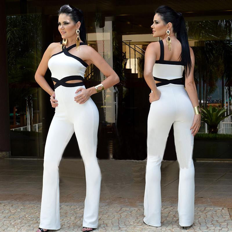 Keywords: Cross Bandage Bodycon Full-Length Jumpsuit