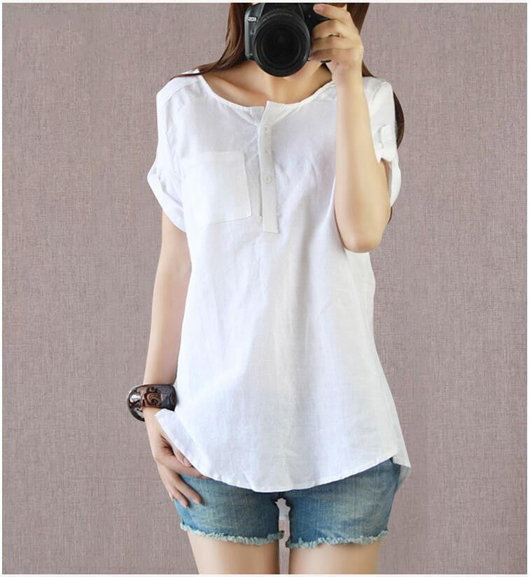 Transform your look today with the Women Blouses Linen Shirt Women Tops O-neck Short Sleeve Blouse Shirt—a perfect blend of style, comfort, and versatility!