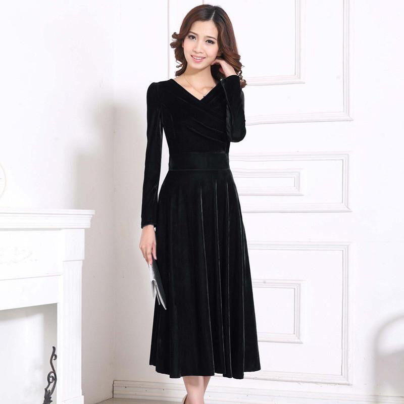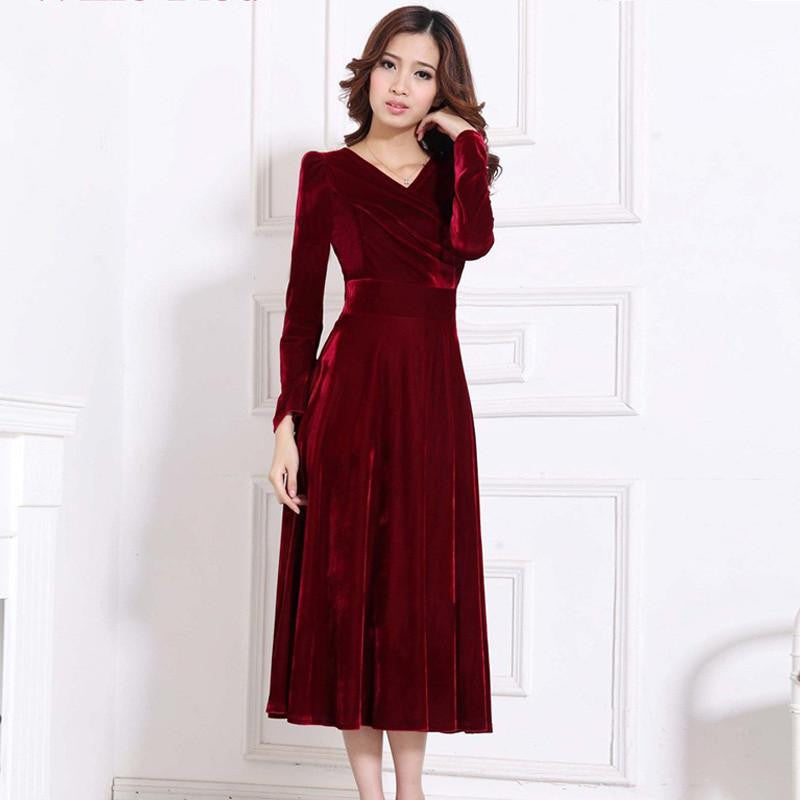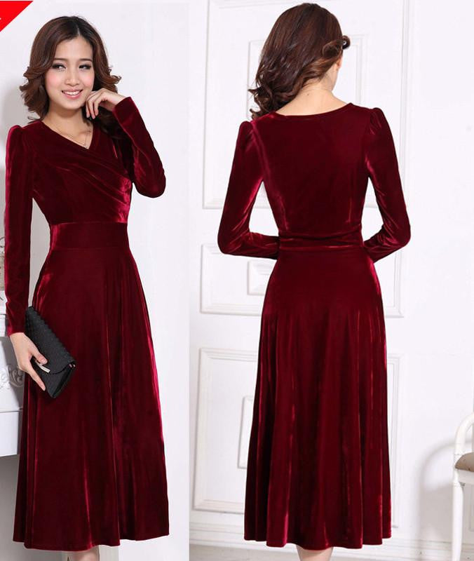 Upgrade your wardrobe with our Women Winter Dress V-Neck Long Maxi Velvet Dresses Elegant Ladies Formal Party Red Dresses black, red, blue. Order yours today and experience elegance like never before!