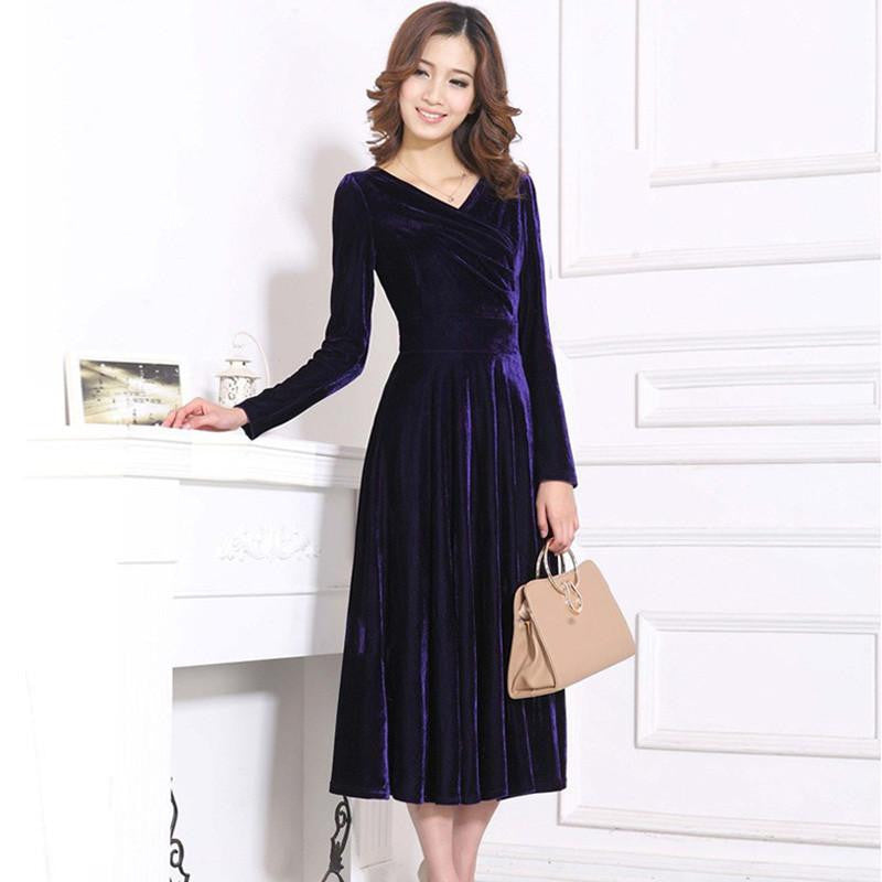 Get the perfect velvet dress right here. This dress exemplifies your beautiful figure and hugs you in all the right places. Available to you now.