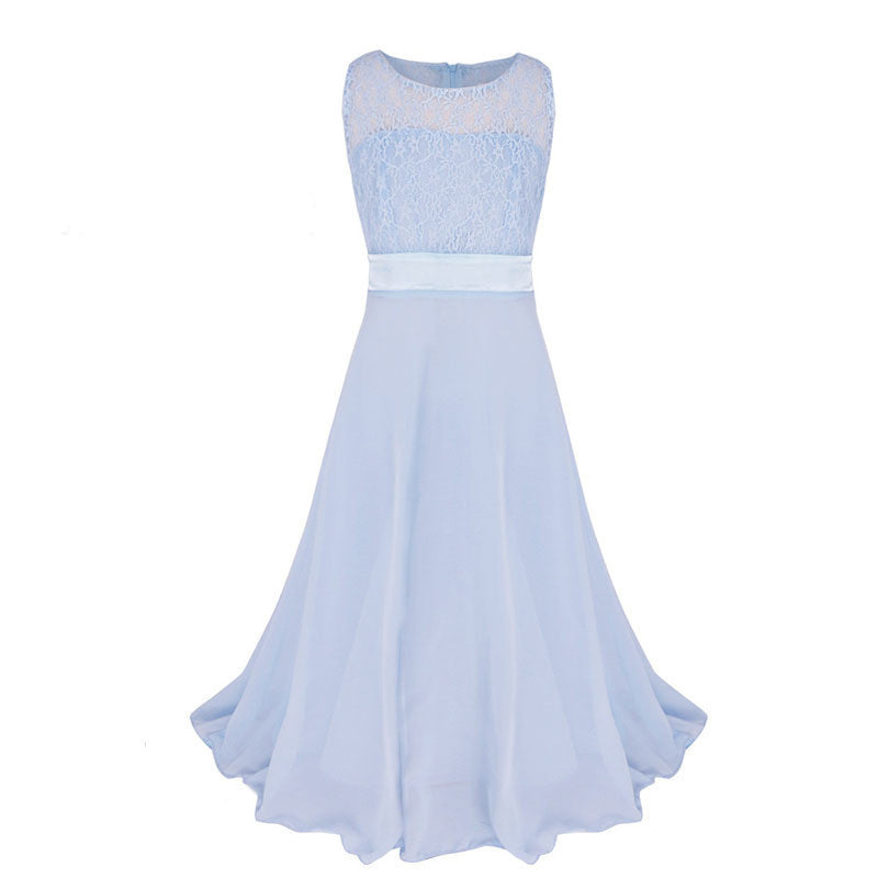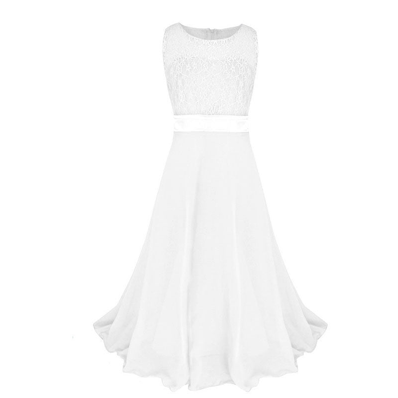 This dress features an O-neck collar and is adorned with beautiful, decorative sashes that enhance its charming appeal. Whether it's for a special occasion or a casual gathering, the Retail Lace Flower Girl Dress Children Kids Beautiful Wedding Party Dress Girl Formal Party Pageant Long Princess Dress lace002 is sure to be a showstopper!