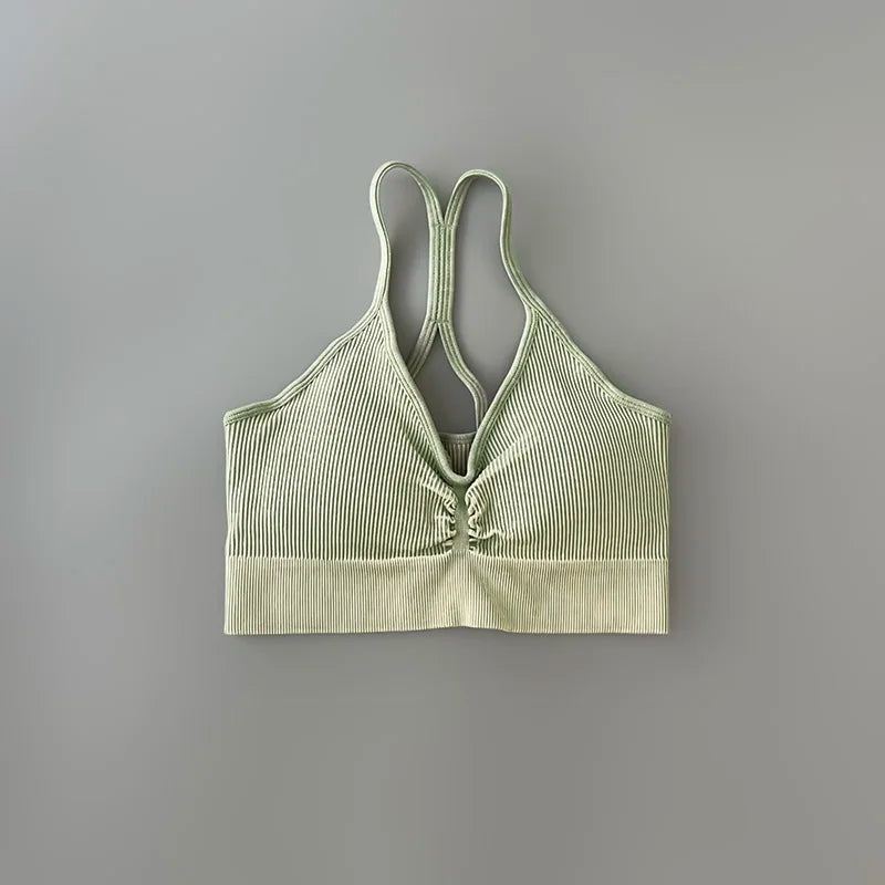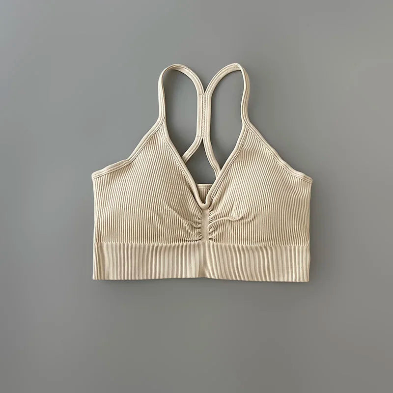 Featuring a seamless ribbed design, this sports bra not only provides exceptional support but also gives you a chic look that transitions effortlessly from the gym to the street. The padded cups and push-up effect enhance your natural shape, ensuring you feel confident while you conquer your workout or yoga session.