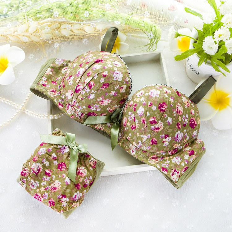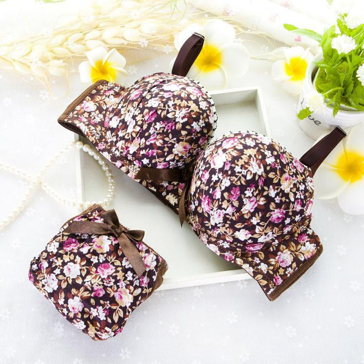 This lovely lingerie set includes a three-quarter cup bra featuring a three-hook back closure for added security, paired with matching briefs for a complete look. Available in striking colors like black, blue, green, and brown, you can choose the shade that best suits your style. Whether it's for a special occasion or everyday wear, this Seamless Underwear Modal Comfortable girls small Bra Set Print Floral Bra Brief Sets Bra And Panty Set Lingerie is sure to impress.