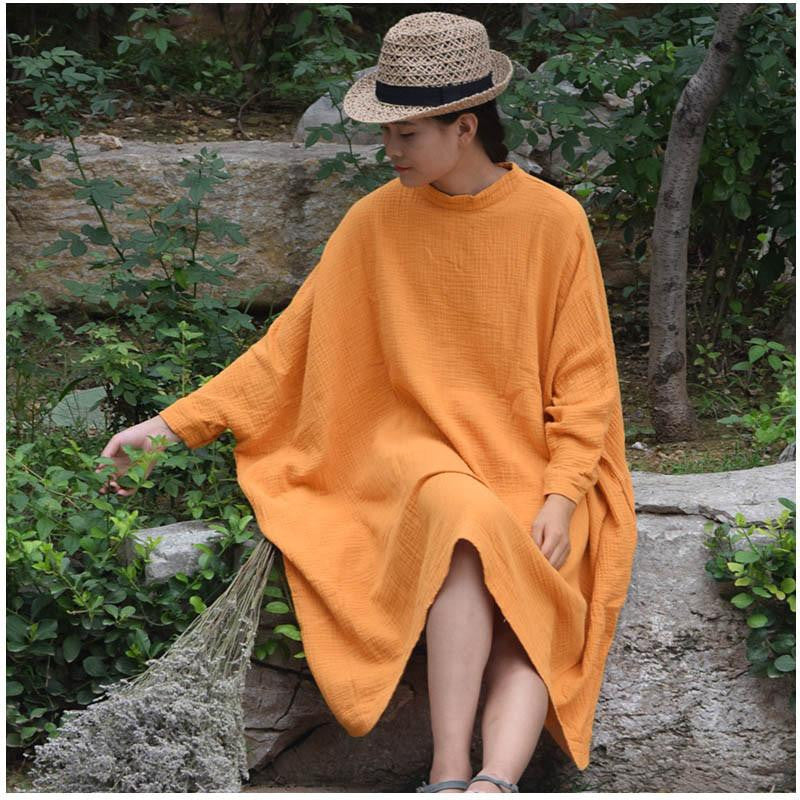 Elevate your wardrobe with the Women Tops Stand Collar Batwing Sleeve Big Shirts Loose Casual Dress 100%Cotton Women Dress Dress S67 and experience the perfect combination of elegance and functionality!