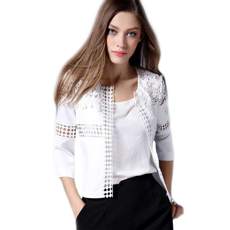 Discover the elegance and sophistication of our Women office work Floral Lace Patchwork 3/4 Sleeve Solid Casual Women Jackets Tops Cardigan Blouses. This stunning piece combines comfort with style, making it the perfect addition to your work wardrobe. Crafted from a premium blend of acetate, spandex, and polyester, this versatile cardigan is designed to keep you looking chic while feeling relaxed throughout your busy day.