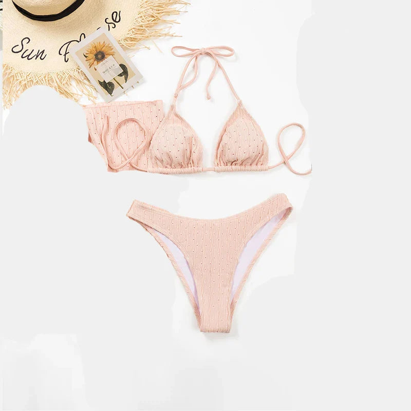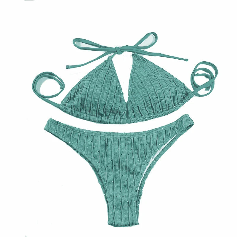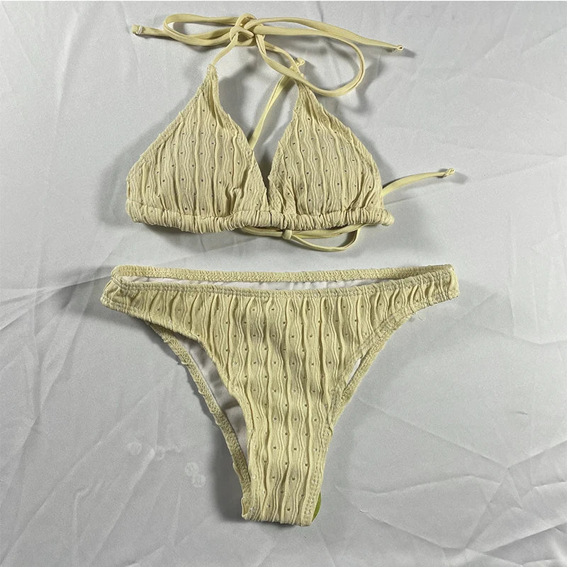 This Jacquard Drawstring Two Piece Swimsuit is not just a bathing suit; it's a statement piece. The flattering design, combined with quality fabric, ensures durability and comfort while you enjoy the sun and sea. Say goodbye to ordinary swimwear and embrace a new level of confidence and style when you wear this chic bikini set.