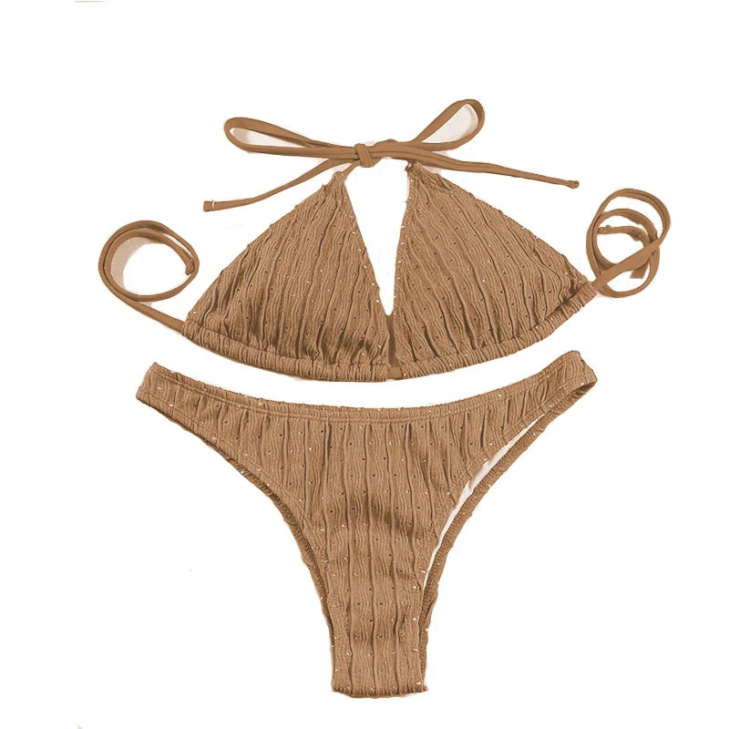 Discover the ultimate style and comfort with our Jacquard Drawstring Two Piece Swimsuit Female Swimwear Women Bikini Set Bather Swimming Beachwear for Bathing Suit. This exquisite bikini set is designed for women who appreciate both fashion and function, making it the ideal choice for beach days or poolside lounging. The unique jacquard woven design adds a touch of elegance, while the adjustable drawstring ensures a perfect fit that flatters every figure.