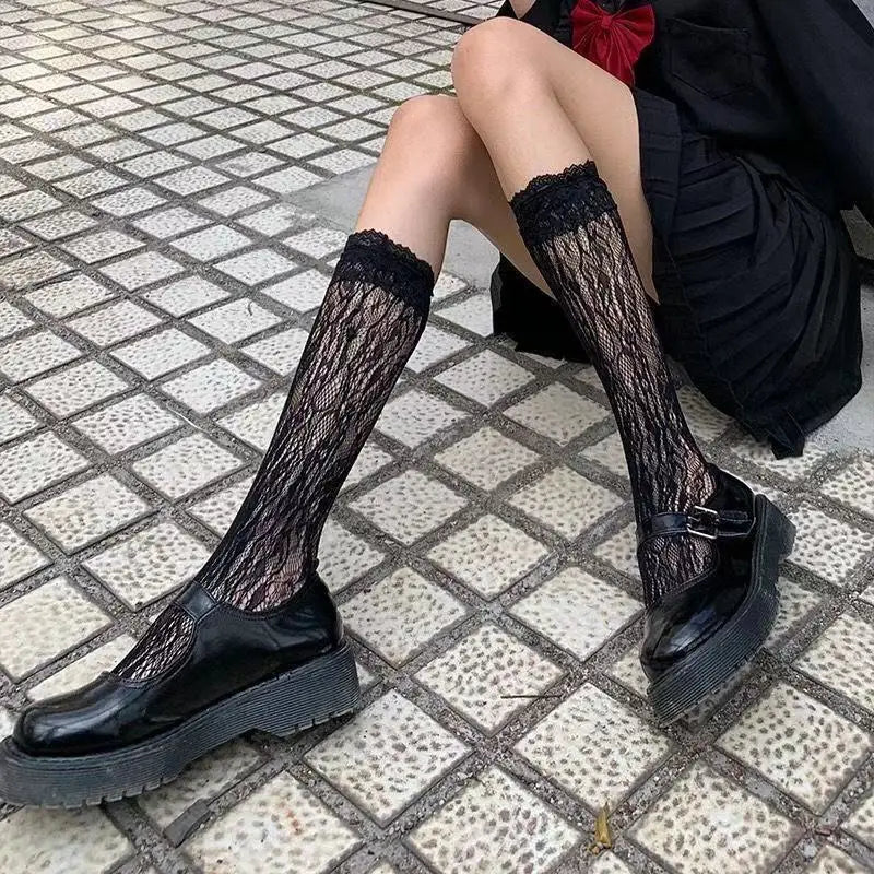Discover the charm of our Japanese Style Stockings Lolita Bowknot Fishnet Knee Socks Anti-Snagging Women Hollow Lace Stocking Fish Net Pantyhose. These unique knee socks are designed to elevate your fashion game while offering supreme comfort. Crafted with delicate fishnet material, they feature a playful bowknot and intricate hollow lace design that adds a touch of whimsy to any outfit.