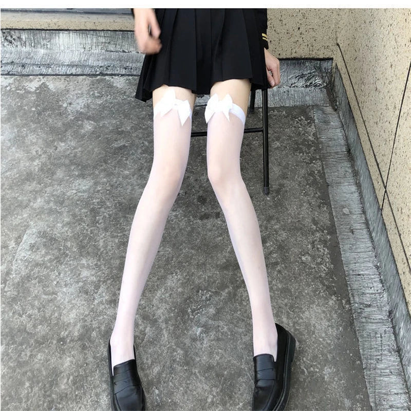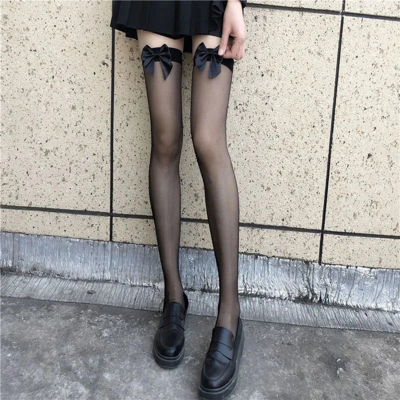 Elevate your style with these quirky Japanese-style stockings! Featuring a playful bowknot and intricate lace detailing, these anti-snagging knee socks add a unique twist to any outfit. Perfect for those who like to stand out, but don't take themselves too seriously. (Only 46 words. And no, they don't come with actual fish.)