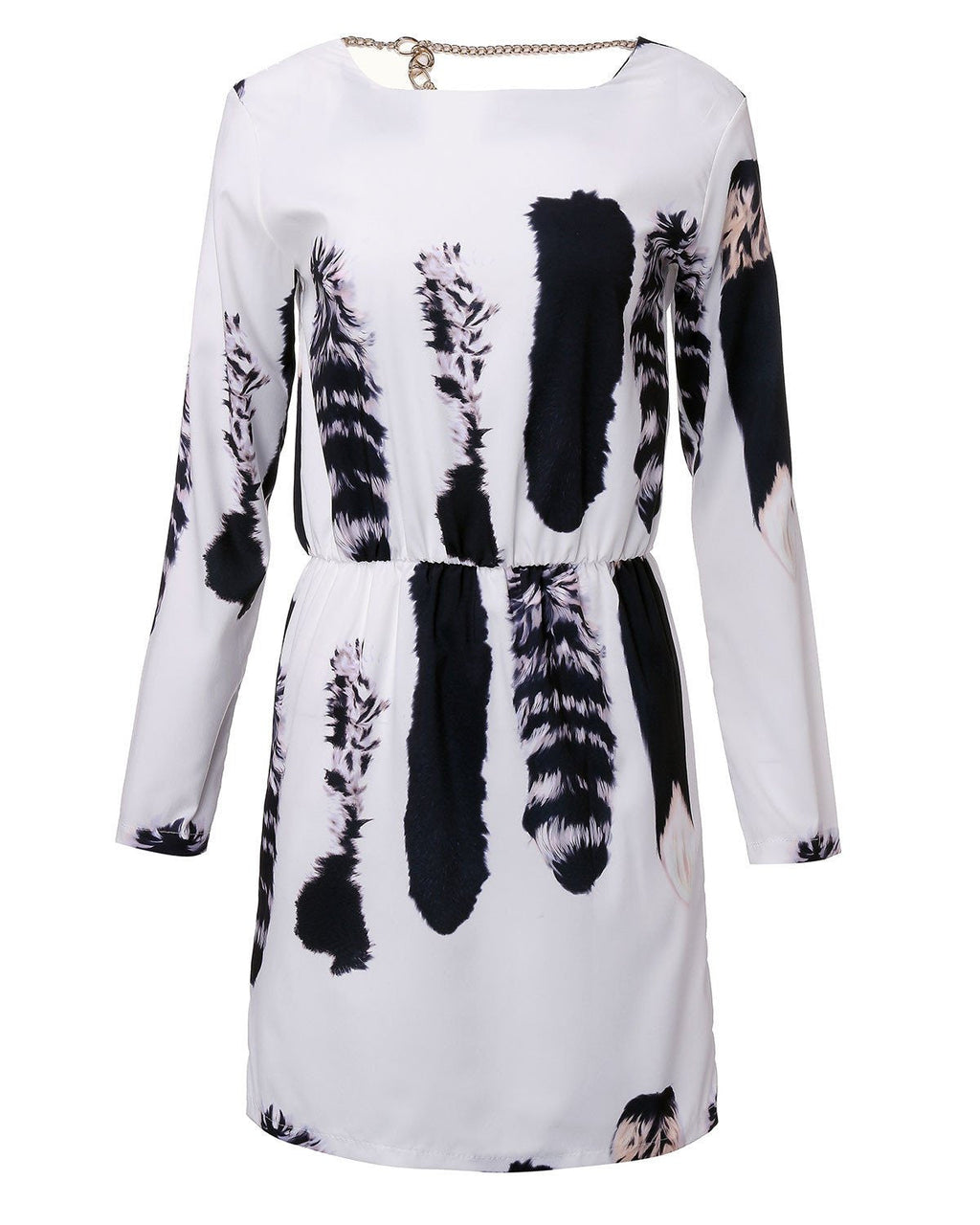 The Open Deep V Neck Backless Short Mini Dress Cat Tail Print Vestidos Long Sleeve Summer Women Halter Party Dresses is not just a dress; it's a statement piece. The above-knee length and A-line silhouette flatter all figures, making you feel chic and stylish. Pair it with your favorite heels or sandals for a complete look that turns heads. Don't miss out on this must-have addition to your summer wardrobe!