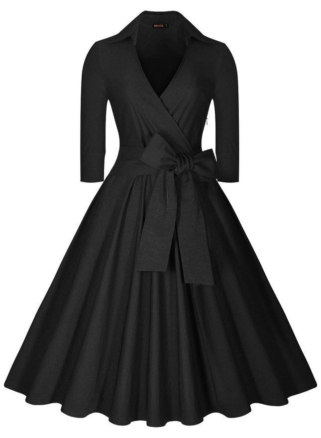 Introducing the Vintage Hepburn Dress Female V-neck Solid 3/4 Sleeve Solid Ball gown Dress Women Casual Party Dresses size S M L XL XXL – a timeless addition to your wardrobe that exudes elegance and charm. This enchanting dress is designed for women who appreciate both style and comfort, making it the perfect choice for any occasion. Whether you're dressing up for a party or looking for a casual yet chic outfit, this dress has you covered.