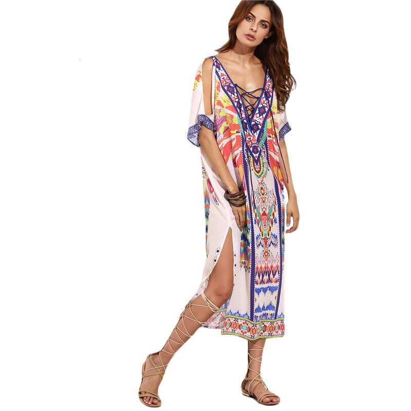 Step out in style and feel stunning in the Woman Summer Beach Dresses Ladies Multicolor Print Crisscross Front V Neck Half Sleeve Split Side Midi Dress. It's the perfect blend of fashion and comfort, making it an essential piece for your summer adventures!