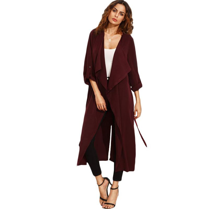 Upgrade your outerwear collection with this stylish and functional coat that is sure to become your new favorite piece. Don’t miss out on the chance to make a fashion statement with the Womens Casual Outerwear Coats Ladies Burgundy Shawl Collar Rolled Up Long Sleeve Split Long Outerwear.