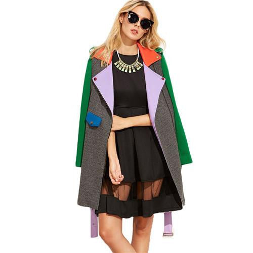Whether you're heading to brunch with friends or enjoying a night out, this Womens Coats Multicolor Oversize Coat Women Casual Color Block Belted Asymmetric Zip Overcoat Coat Female is the perfect companion. Its long length and full sleeves provide warmth and comfort, while the turn-down collar adds an elegant touch. Available in a variety of sizes, this coat is sure to meet your style needs.
