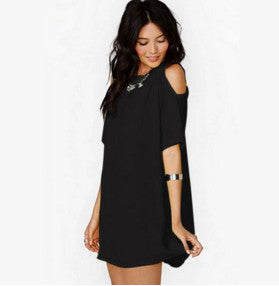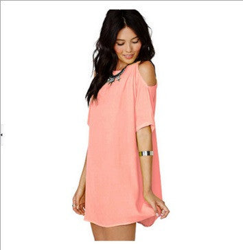 Bring out the chic, stylish, fashionista in you in this fashionable, above the knee, casual, cold shoulder, A-line chiffon gown. It comes in variety of warm and bright colours.