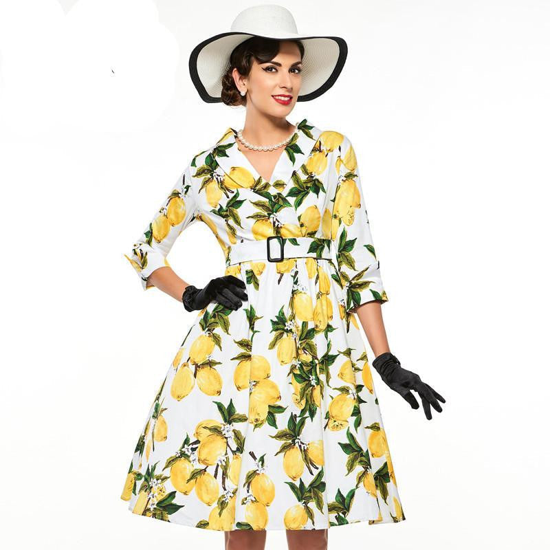 Introducing the Sisjuly women floral vintage dress lemon print party dress style 1950s rockabilly dress vestido luxury pleated vintage dresses, the perfect blend of elegance and playful charm. This stunning knee-length dress is designed to make you feel confident and comfortable while turning heads at any event. Whether it's a garden party or a casual outing, this dress is an essential addition to your wardrobe.