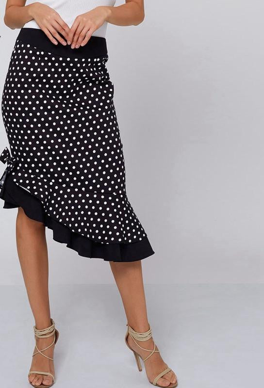 Get this Solid waist line fishtail skirt into your fashion line up today. This polka dot skirt is beautiful.