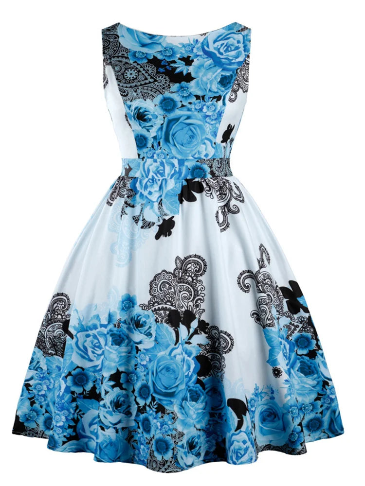 This charming dress is not just for special events; pair it with a blazer for a polished office look or wear it alone for a casual outing. The Sleeveless Cotton Rockabilly Dress easily transitions from daytime to evening, making it a staple in your collection.