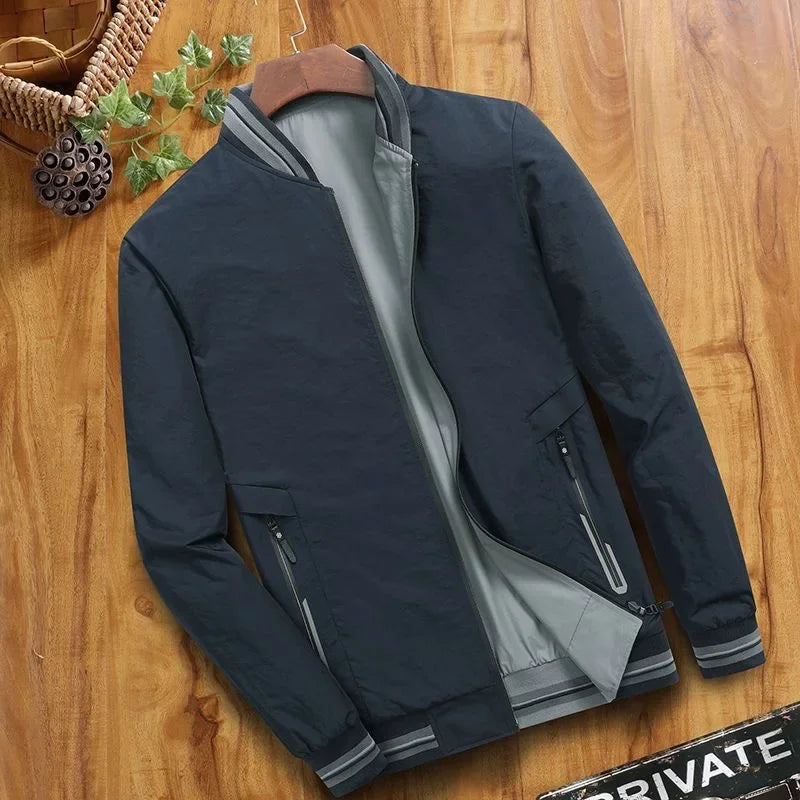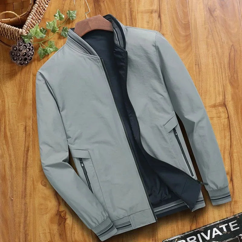Take on the world in our bold men's jacket. With its two colors, double-sided design, and baseball collar, it's a statement piece for any adventure. Stay stylish and practical with its zipper pockets, perfect for your on-the-go lifestyle. Lightweight and trendy, this jacket is a must-have for the risk-taker in you!