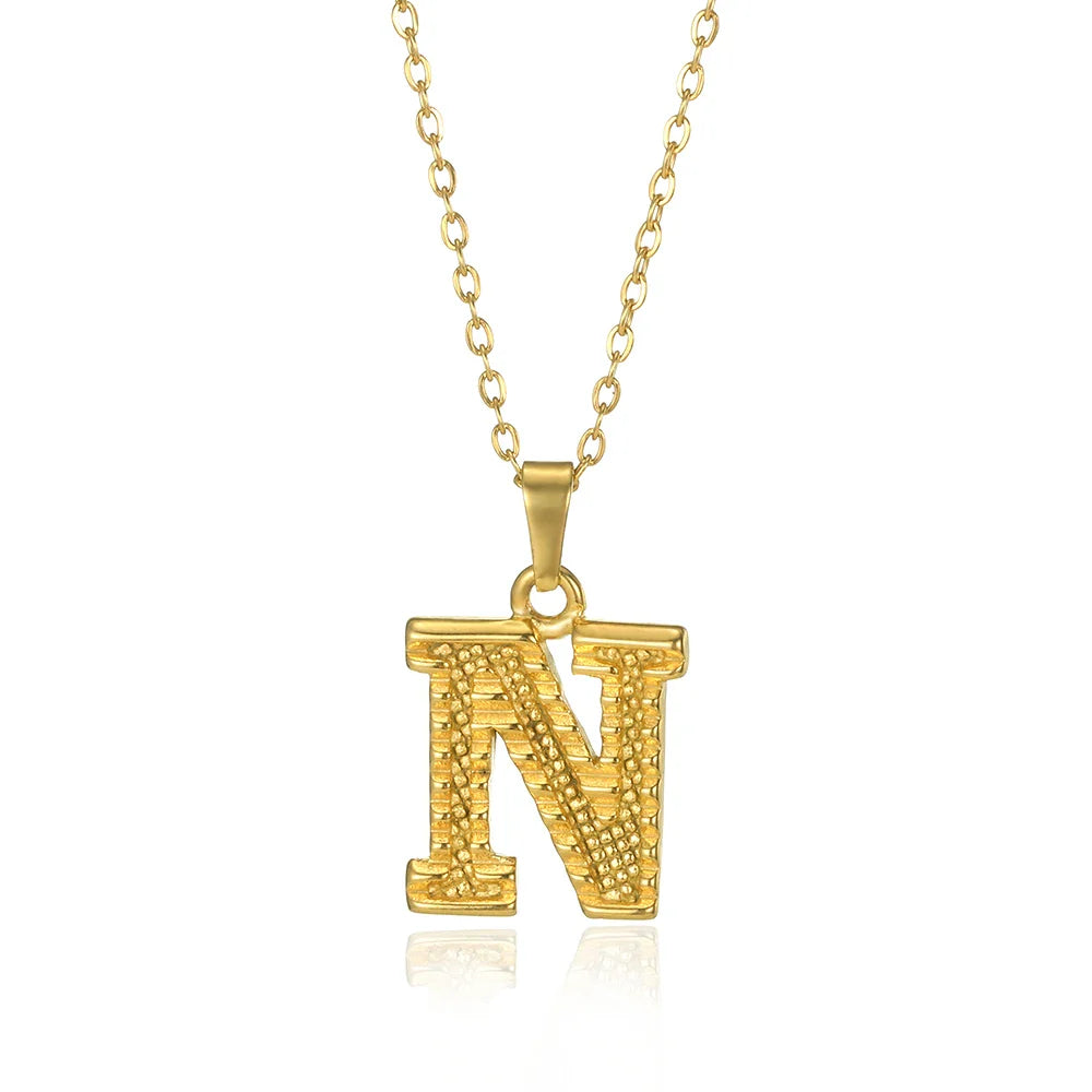Featuring a beautifully designed golden letter pendant, this necklace allows you to express yourself or gift a loved one with a personal touch. Whether you choose your initial or that of someone special, this necklace adds a meaningful flair to any outfit.