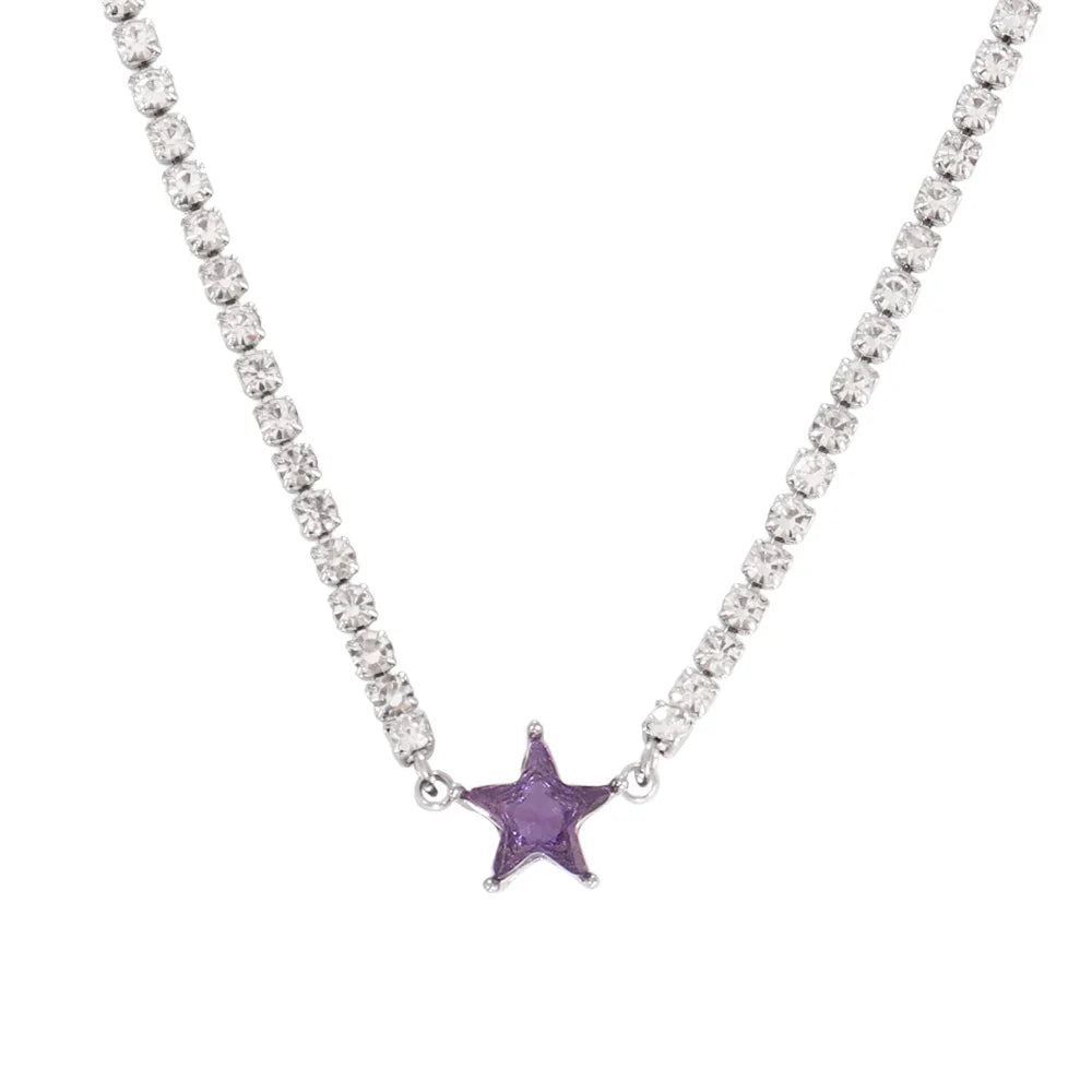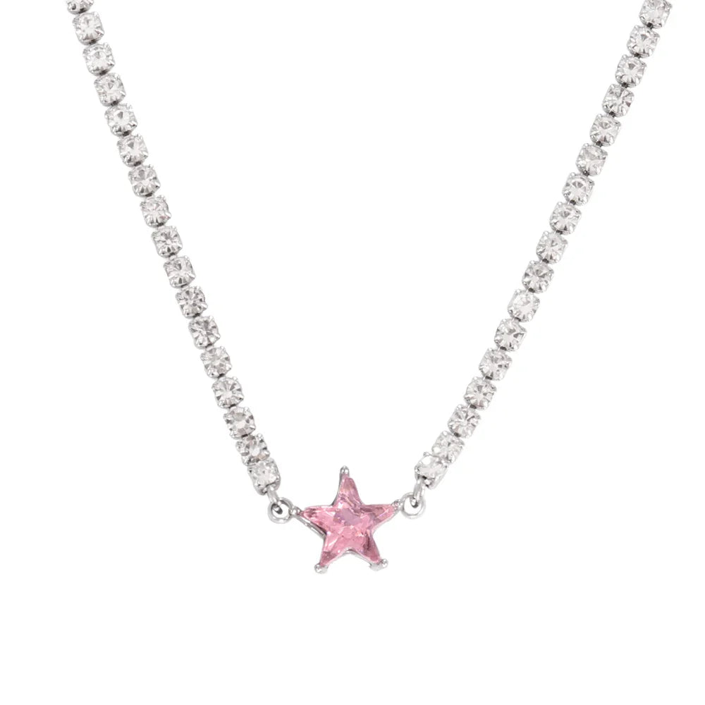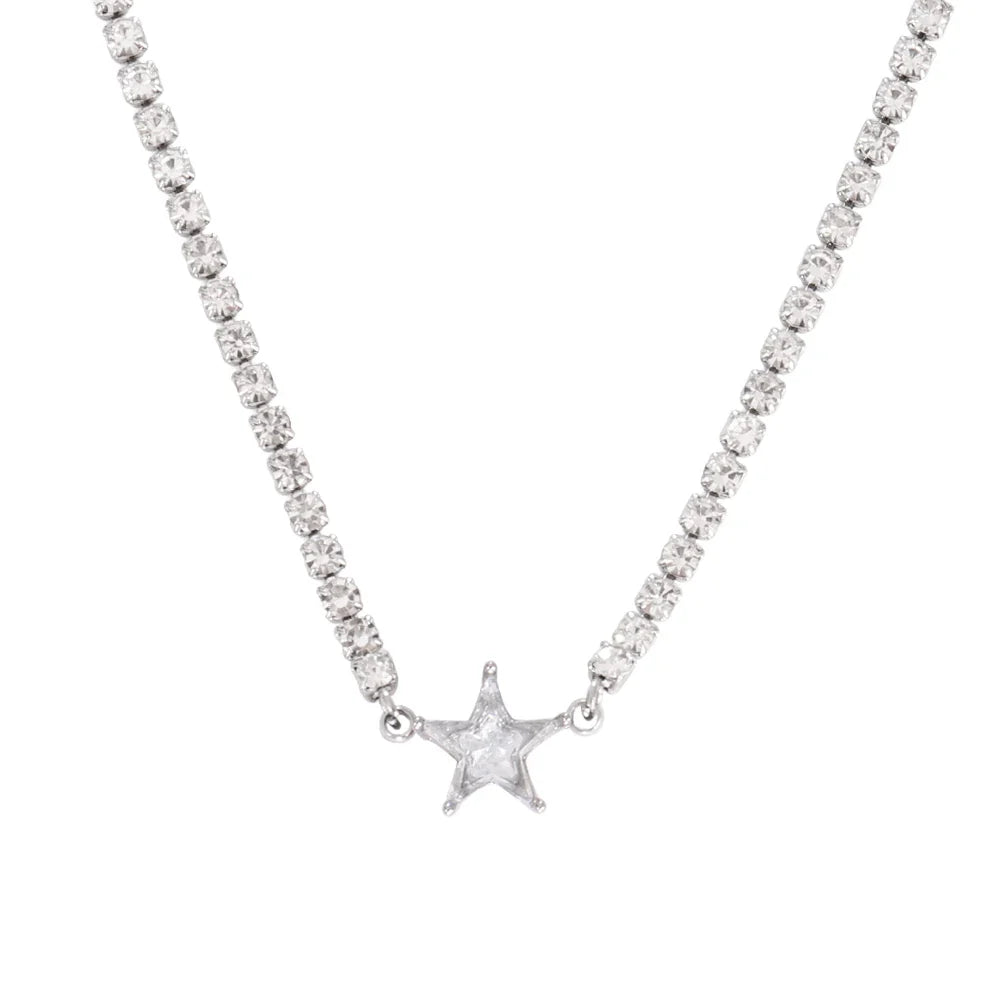 Take a daring plunge into fashion with this hip hop-inspired Necklace Tennis Chain! Square pendant features a sparkling zircon star and heart, giving a daring and bold edge to any outfit. Perfect for fearless women who love to take risks and stand out from the crowd!