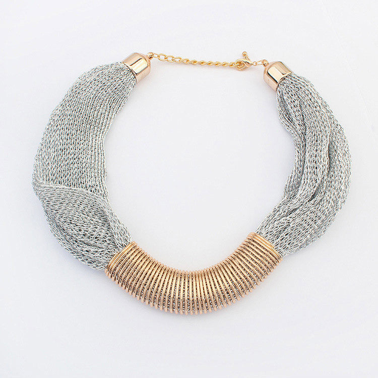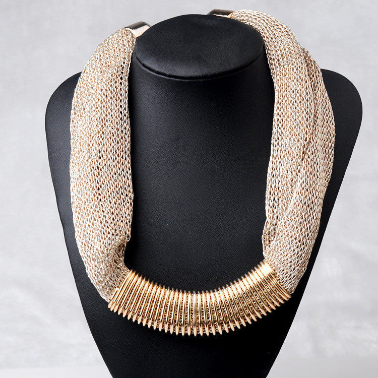 Elegant and exquisite fashionable vintage bib-like collar big chunky choker silk necklace chain for women to complete their style.