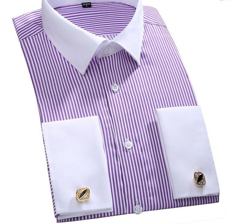Introducing our exquisite Striped Shirt Men Mens Dress Shirt French Cuff Tailored Slim Fit Free Long Sleeve Shirt For Cufflinks Camisa, designed for the modern gentleman who appreciates style and comfort. This slim-fit long sleeve shirt features a classic striped pattern, making it the perfect addition to your wardrobe for both business meetings and casual outings. Its tailored design not only provides a sleek silhouette but also includes French cuffs, allowing you to showcase your favorite cufflinks with ease.