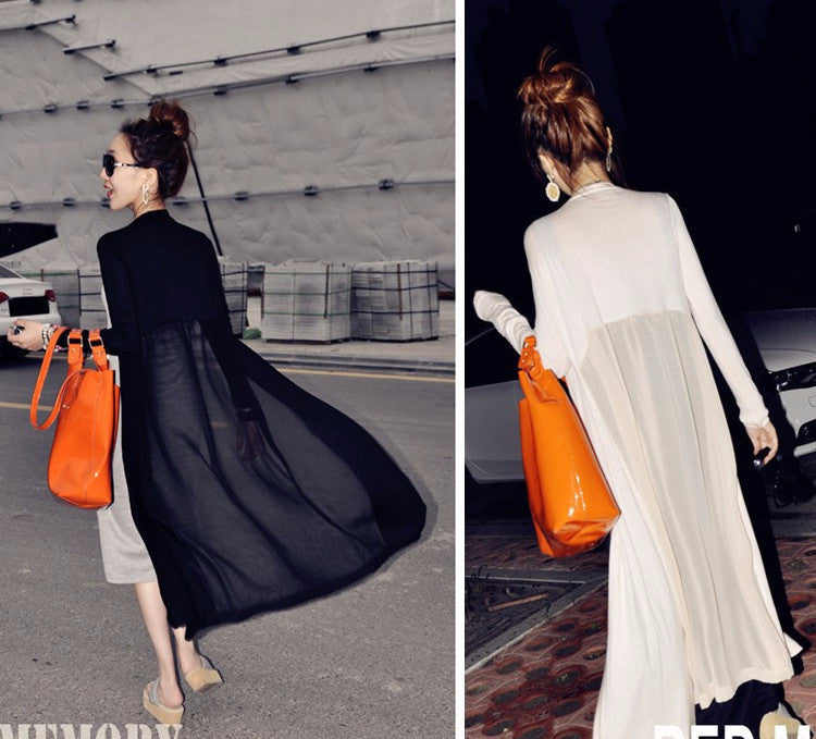 Elevate your style with the Long Perspective Cardigan Kimono Loose Tassels Shawl Beach Gray/Black/White Color chiffon&modal. This stunning piece is a must-have addition to your wardrobe, designed for the modern woman who values both comfort and elegance. Crafted from a luxurious blend of chiffon and modal, this cardigan offers a soft feel against your skin while providing the perfect layering option for any occasion.
