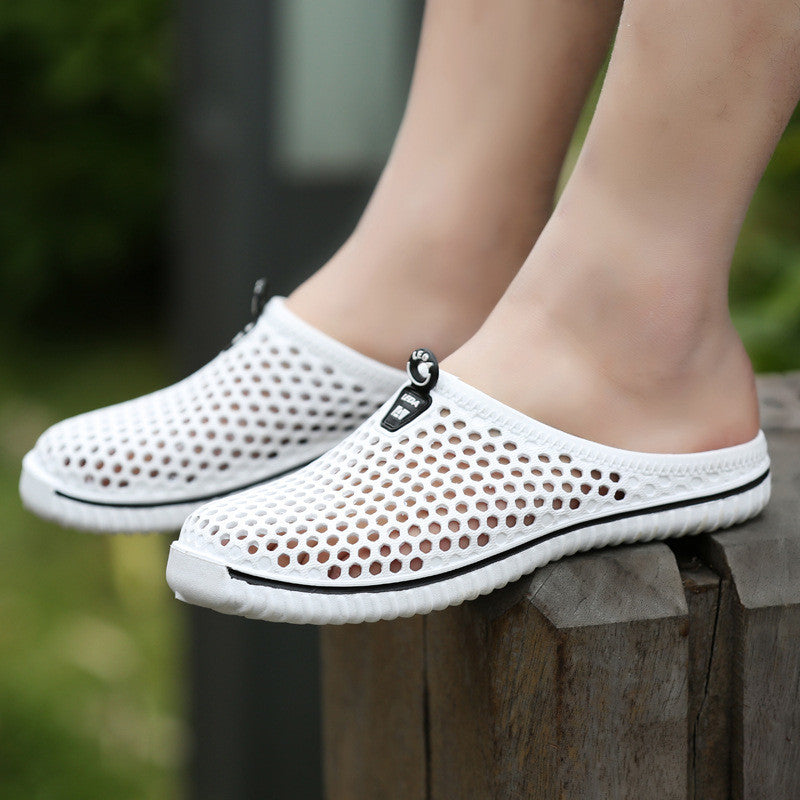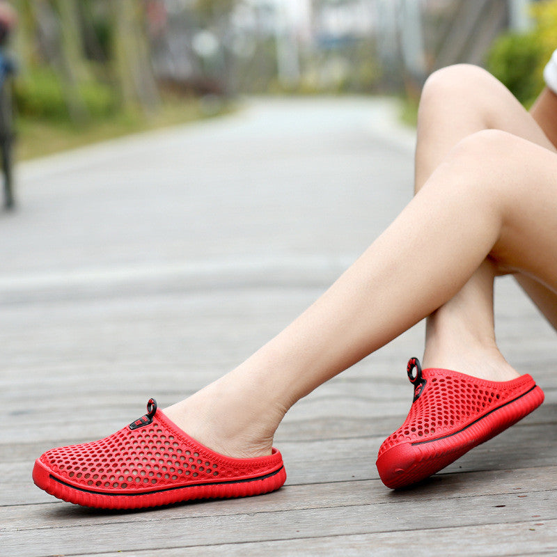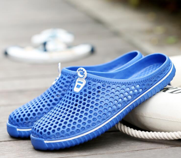 A nicely cut flat soft sole unisex breathable hole beach shoes that can be used as footwear in the garden.
