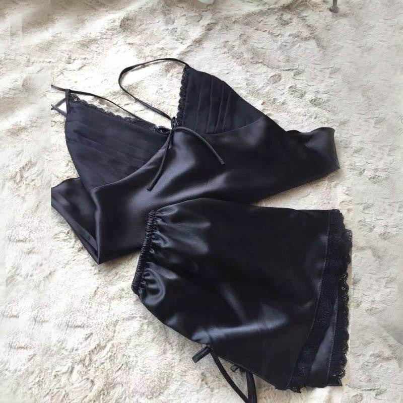 Elevate your sleepwear game with our Silk Womens pajama set Sleepwear Spaghetti Strap Lace Womens Set. Indulge yourself or surprise a loved one with a gift that embodies elegance and comfort. Don't miss out on this stunning addition to your wardrobe!