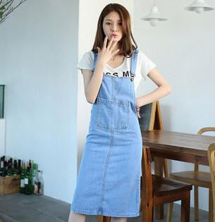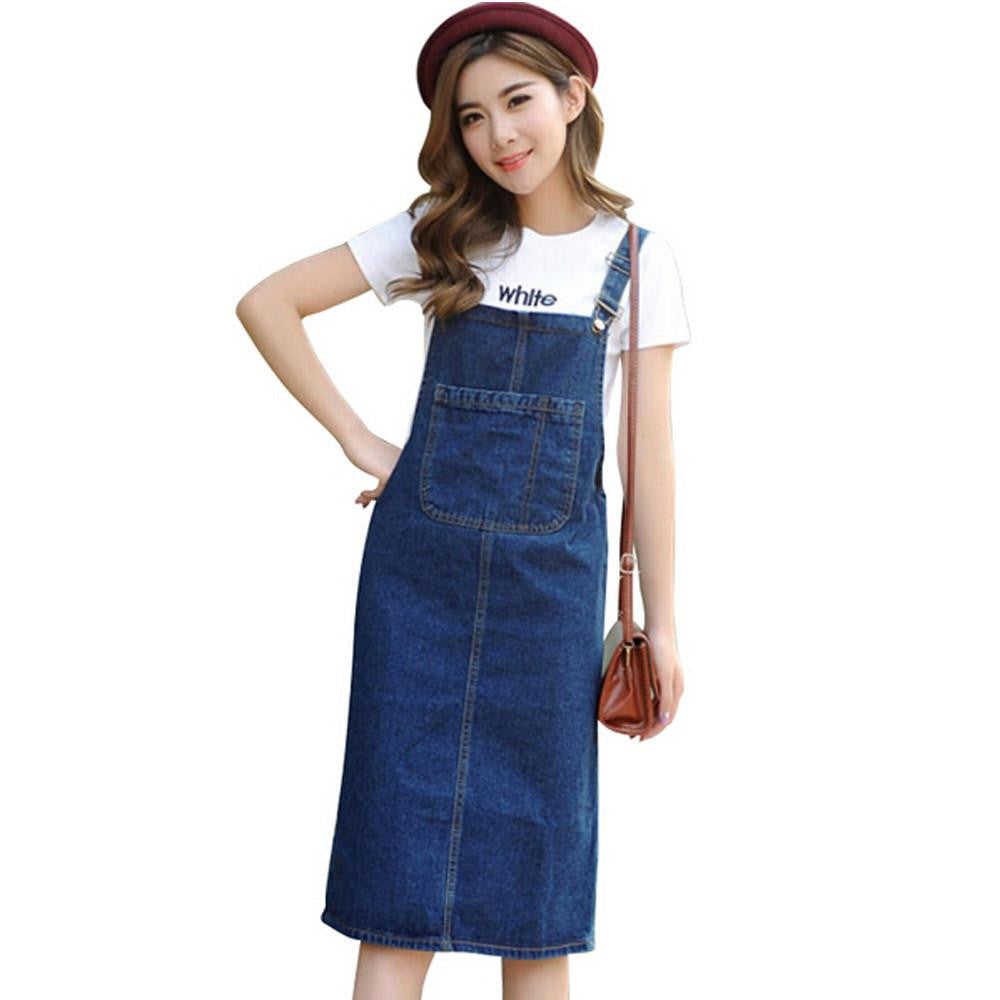 The knee-length denim dress with suspenders can be yours. This casual piece is perfect for the summer holiday and comes with side pockets. Look casual comfortable and cute in this piece.