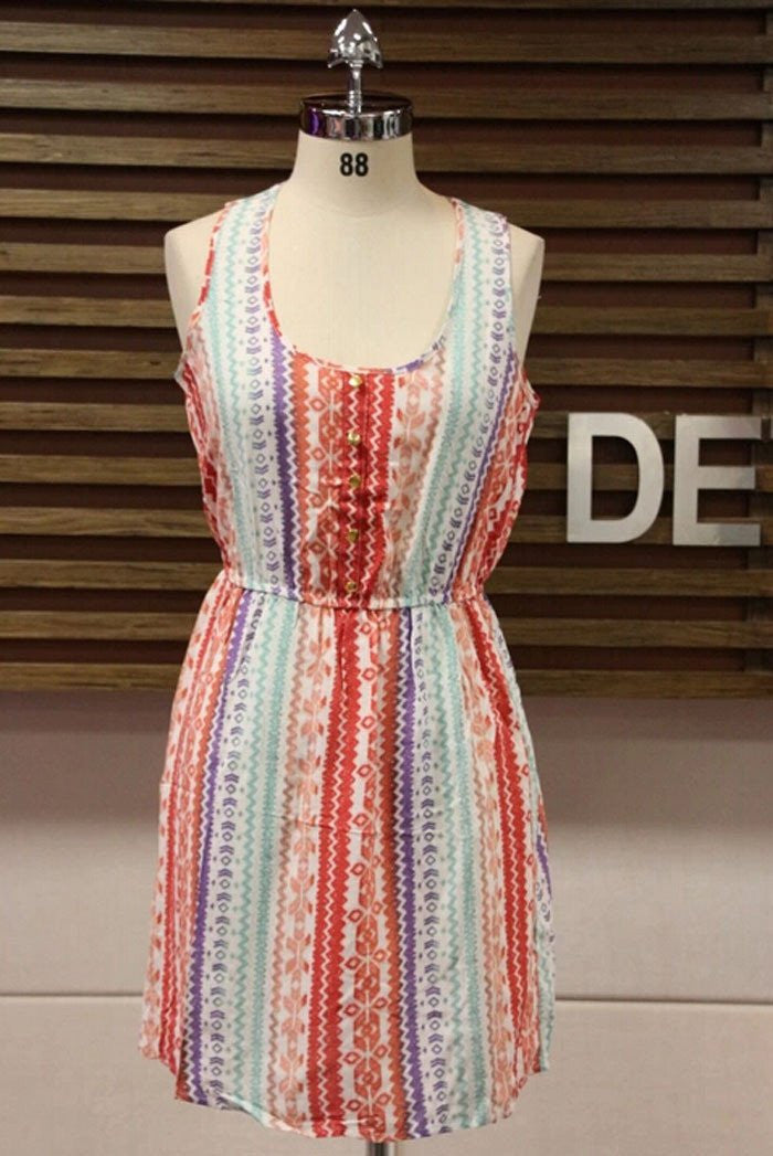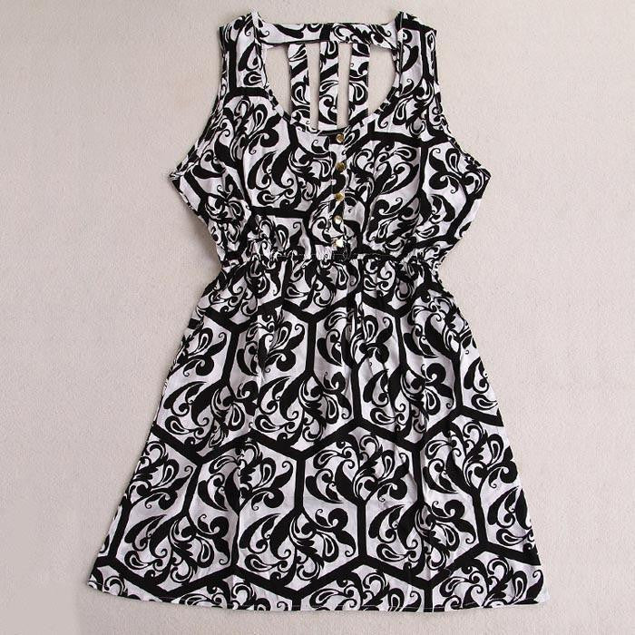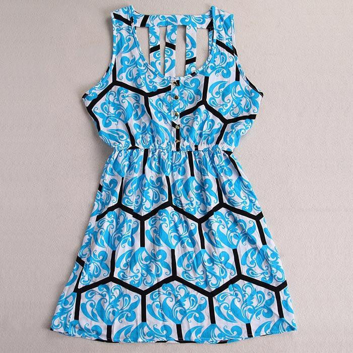This knee-length dress boasts a backless silhouette that adds a touch of elegance and allure. Crafted from a soft blend of cotton and rayon, it promises breathability and ease throughout the warm months. The natural waistline and pleated design create a flattering fit for all body types, making it a must-have in your wardrobe.