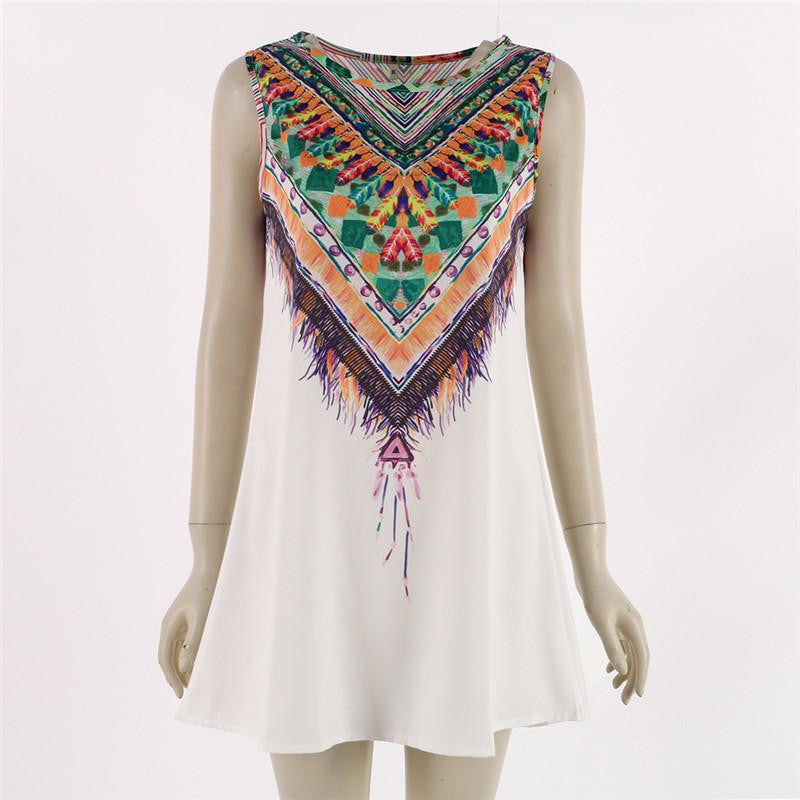 Introducing our Summer Style Women Fashion Vintage Print Mini Boho Dress Casual Party Beach Dresses Plus Size, the ultimate addition to your warm-weather wardrobe. This dress features a stunning vintage print that exudes Bohemian charm, making it perfect for casual outings, beach parties, or any summer gathering. With its sleeveless design and A-line silhouette, you can enjoy both comfort and style.