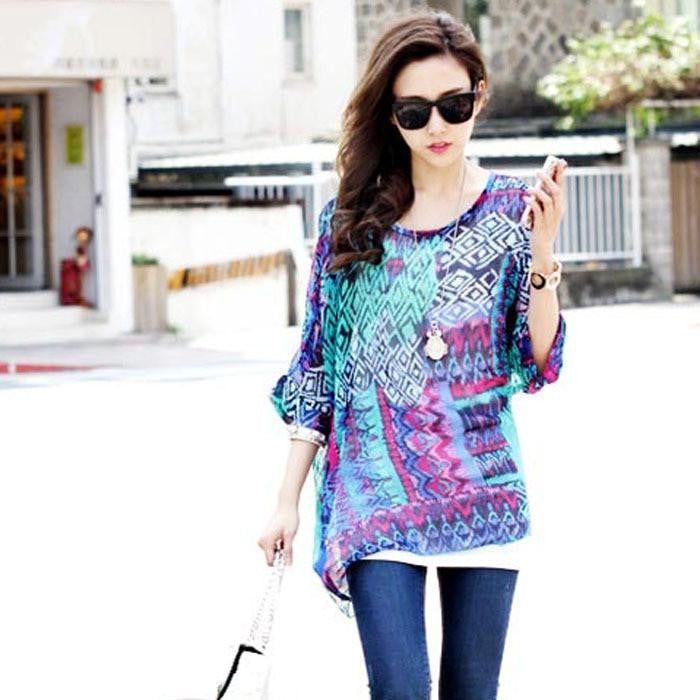 To maintain the beauty of your Women Casual Chiffon Blouses Bohemia Print Loose Batwing Sleeve Tops Shirt, we recommend washing it gently in cold water and hanging it to dry.