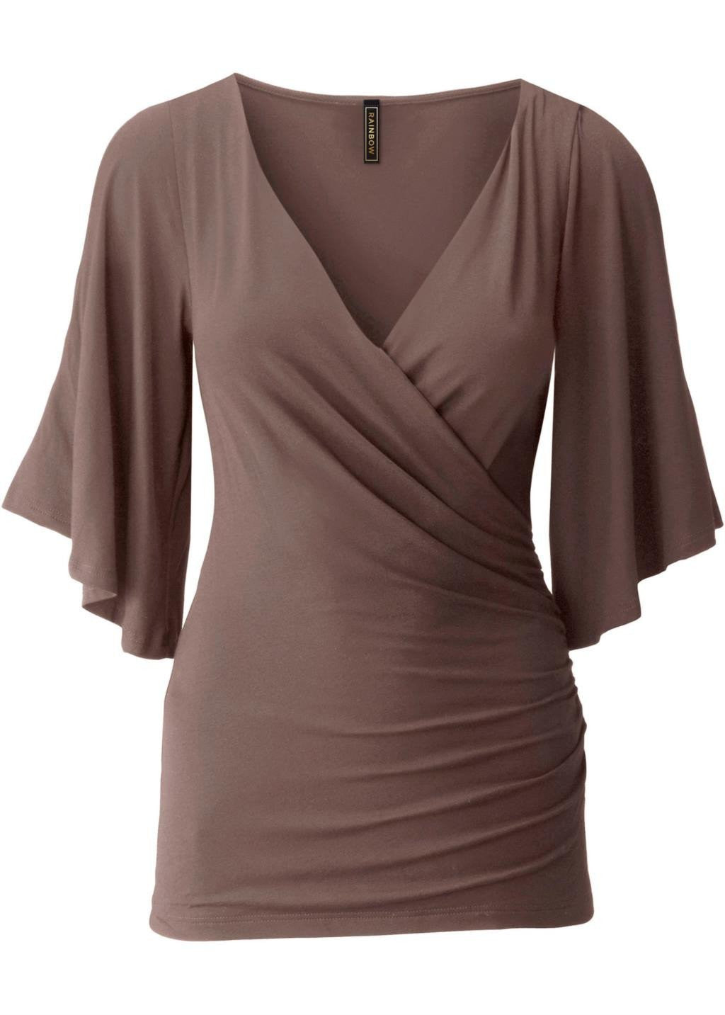 Featuring a flattering butterfly sleeve and a chic V-neckline, this shirt is designed to enhance your silhouette while providing a relaxed fit. The solid pattern ensures that it can be easily paired with any outfit, making it perfect for both casual outings and more formal occasions.