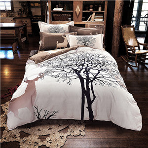 Refresh your bedroom decor with this exquisite bedding set that not only enhances the aesthetic appeal of your space but also provides unmatched comfort. Experience the blend of style and functionality with our Tree Deer print bedding set thick sanding cotton Bedlinen Queen/King size Duvet cover set today!