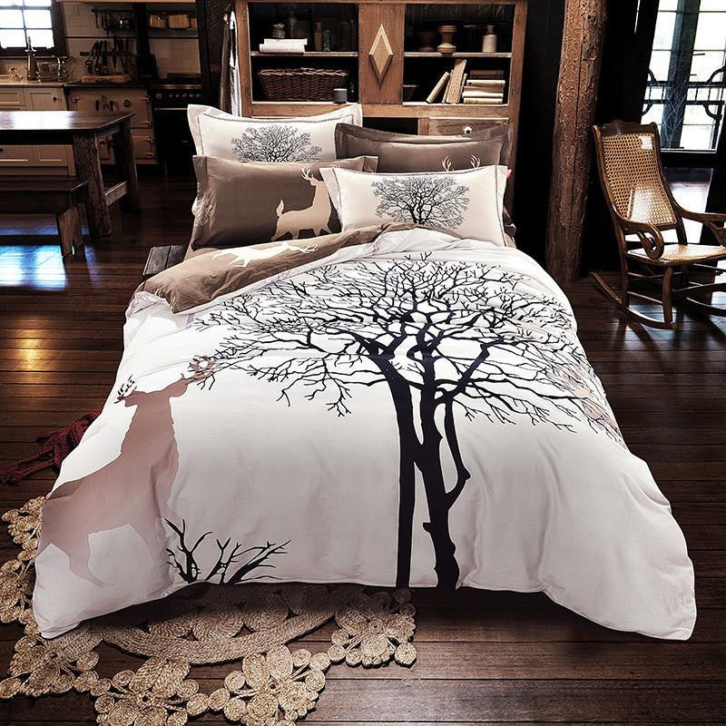 The Tree Deer print bedding set thick sanding cotton Bedlinen Queen/King size Duvet cover set includes: