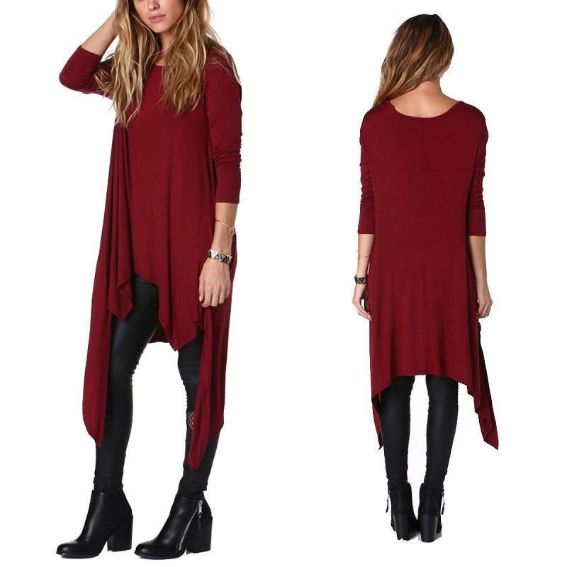 Upgrade your wardrobe with our Tshirt women casual Women O-neck fashion Loose plus size Asymmetric long sleeve Tunic T-shirt Dress HOT today and experience the perfect mix of comfort and style!