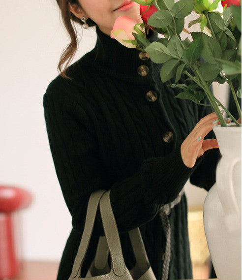 Embrace the chilly seasons with our Long Sweater Dress Fall Winter Fashion Cable Vintage Single-breasted Knee-length Belt Knitted Maxi Dress WQL2828. This exquisite piece combines warmth and style, ensuring you remain both cozy and chic throughout autumn and winter. The slim round neck design not only highlights your silhouette but also provides a comfortable fit, making it an ideal choice for casual outings or cozy evenings at home.