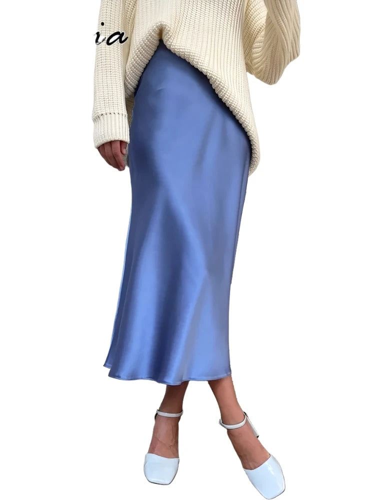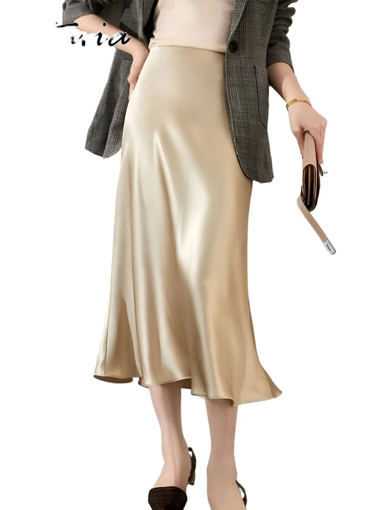 Introducing our exquisite Silk Satin Skirts for Women High Waisted Skirt Women A-Line Elegant Skirts Summer Pink Midi Skirt, designed to add a touch of sophistication to your summer wardrobe. Crafted from luxurious silk satin, this skirt offers a soft, flowing silhouette that enhances your natural curves while providing ultimate comfort. The high-waisted design not only flatters your figure but also ensures a secure fit, making it perfect for various occasions.