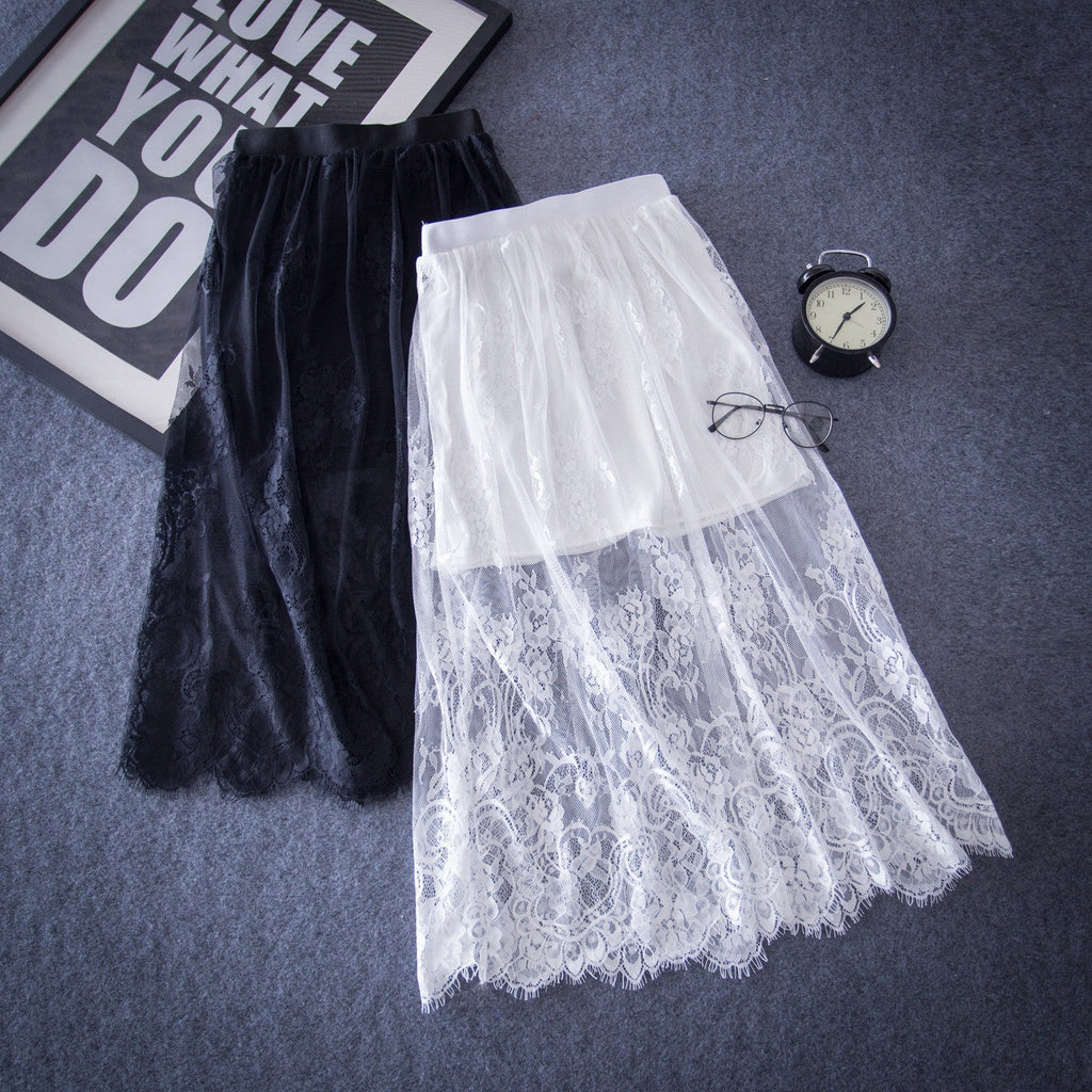 Made from a quality blend of cotton, rayon, and lace, our hollow body length lace backing paragraph slim slim gauze LINED SKIRT ensures breathability and comfort. The lightweight fabric flows effortlessly, providing you with all-day ease while maintaining a chic appearance.
